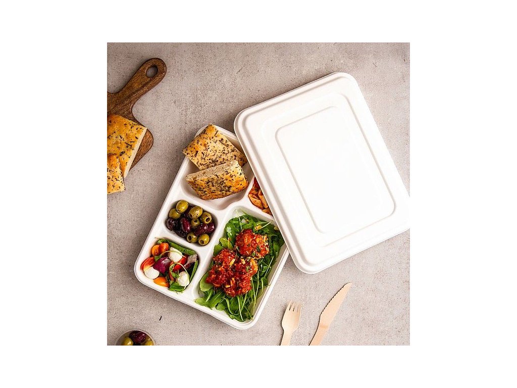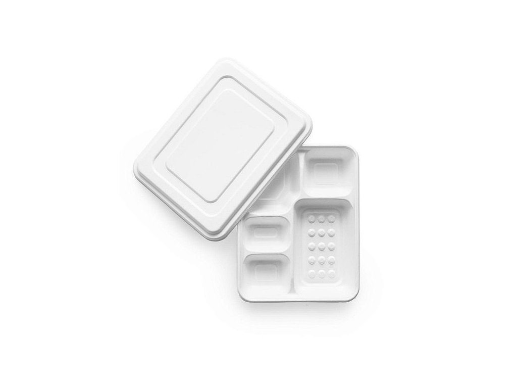 Miska na jedlo z cukrovej trstiny bagasse 5-dielna s vieckom (50ks)