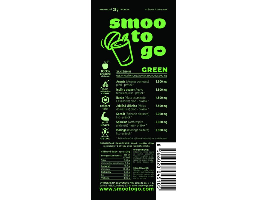 ZLOŽENIE : ŠPENÁT, SPIRULINA, MORINGA, ANANÁS, BANÁN, INULIN Z AGÁVE, JABLČNÁ VLÁKNINA