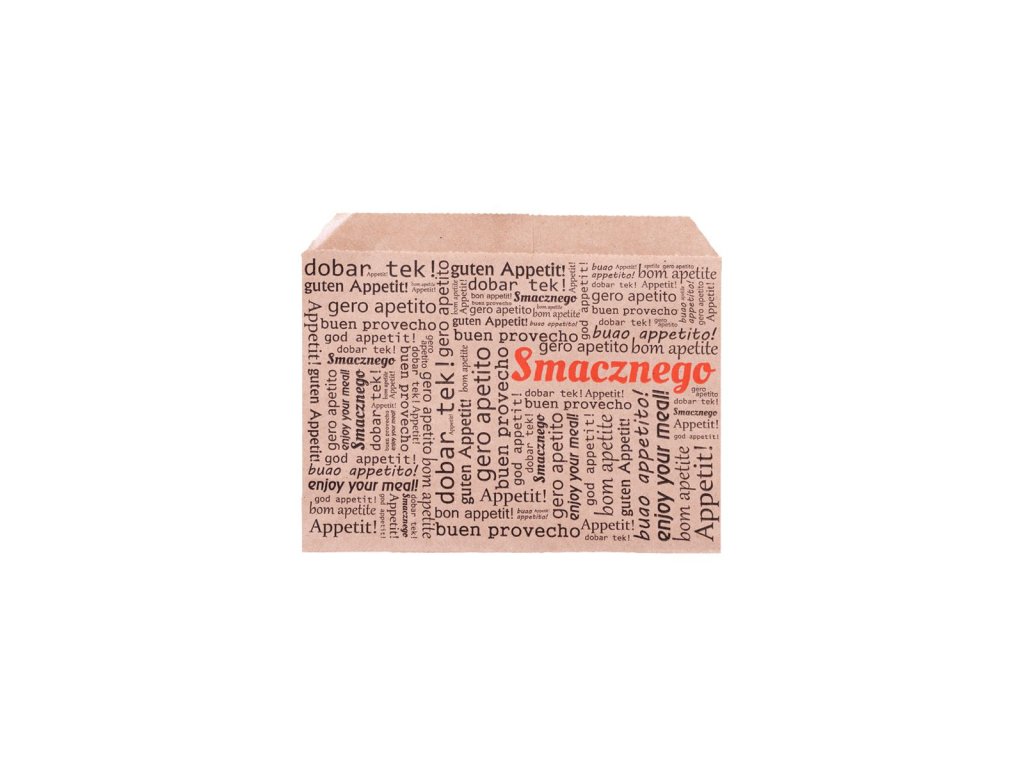 Papierove vrecko na hranolky kraft hnede smacznego 140x100mm (200ks)