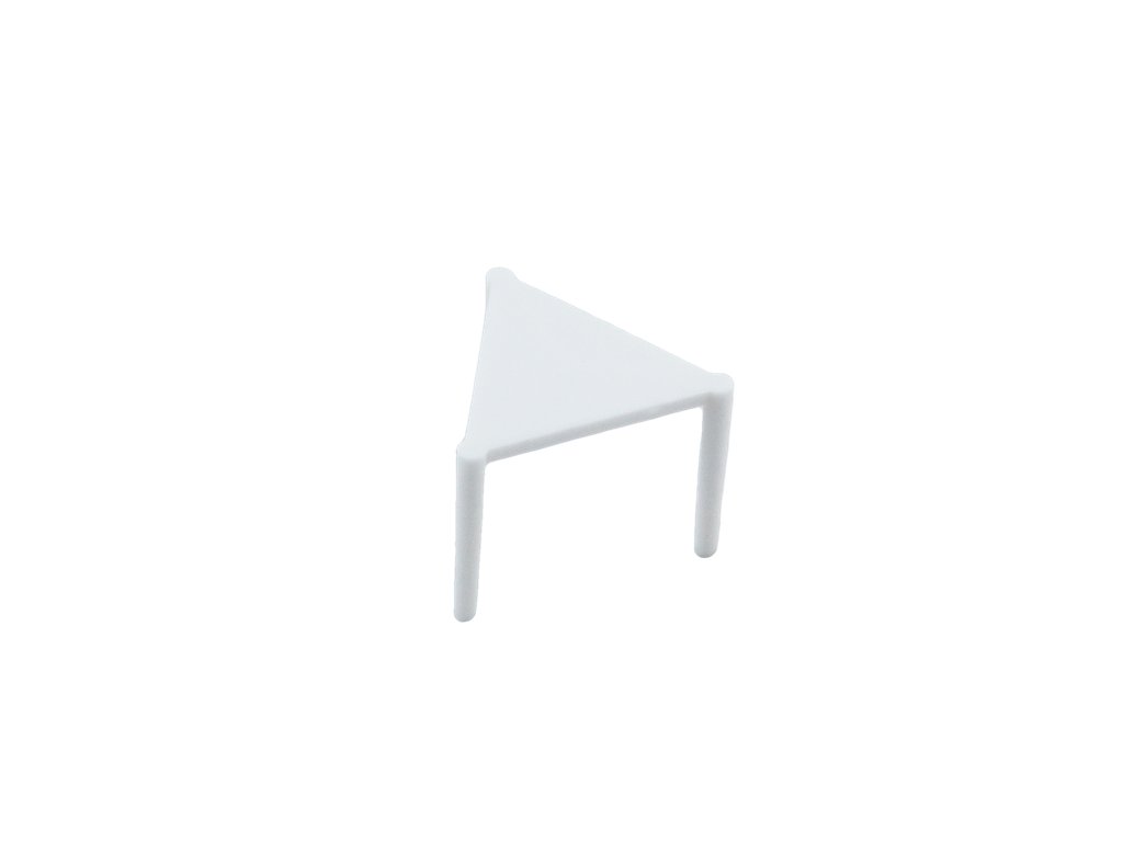 Plastový biely distančný stojanček, ktorý sa vkladá uprostred na pizzu v krabici ako vzpera, ktorá zabráni dotyku veka krabice s hotovou pizzou.