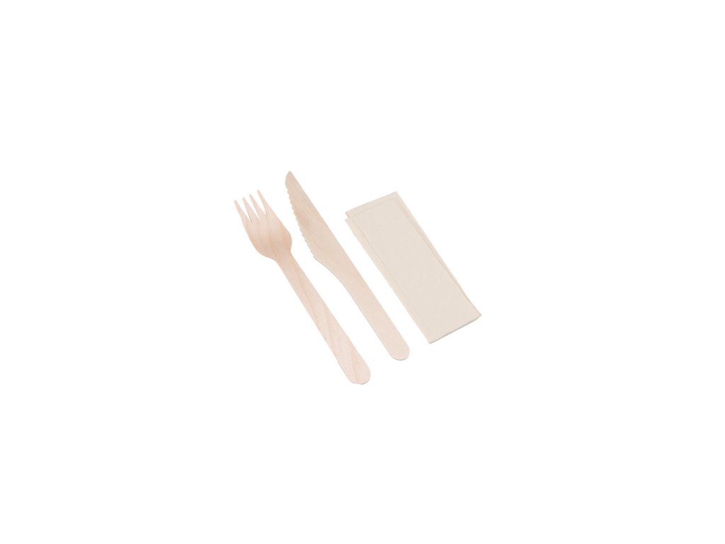 Sada drevenych priborov (noz + vidlicka + obrusok) material breza 250ks